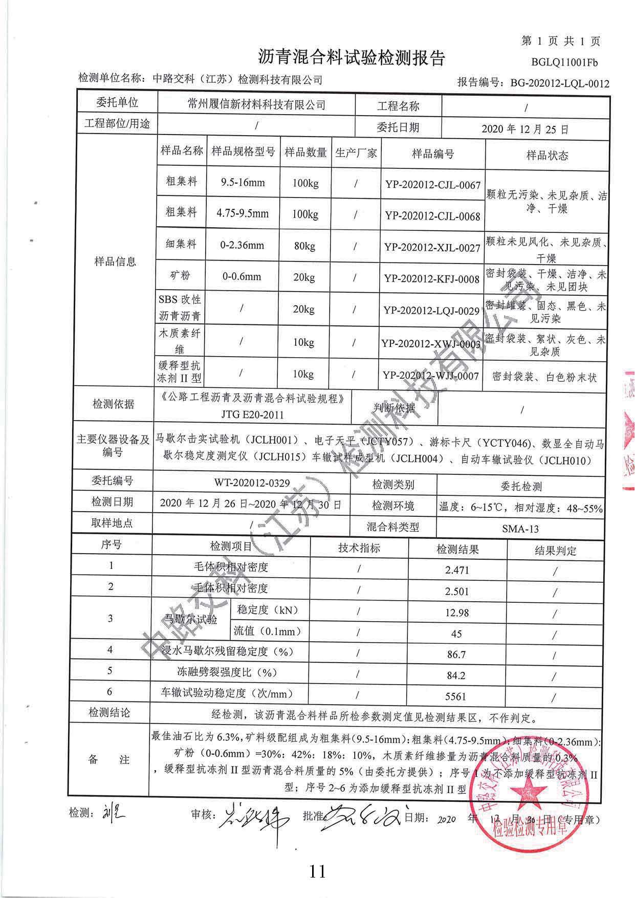 抗凝冰瀝青試件中路交科CMA認(rèn)證檢測報告